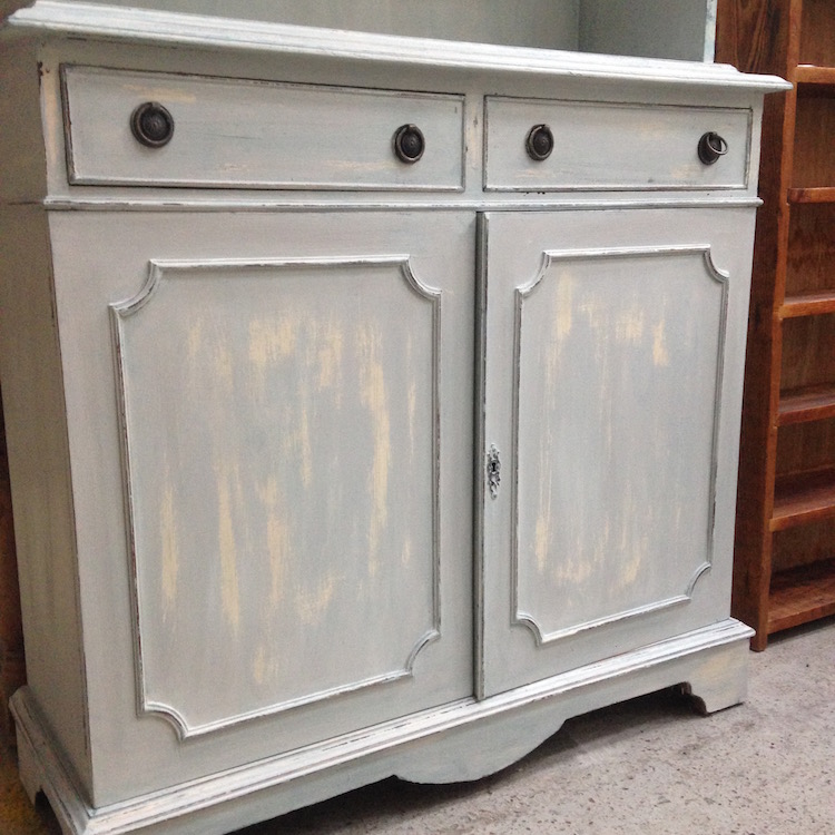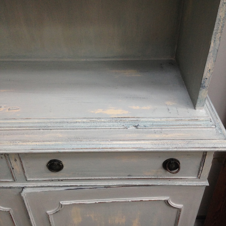 I used two different tones of grey chalk paint. The darker tone underneath, and the lighter on top, plus finish with a generous rubbing of wax.