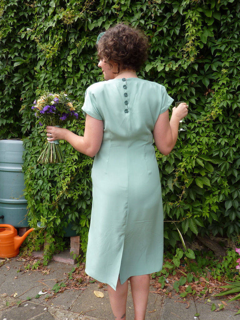 We chose a 1940’s Vogue pattern and used the reverse matt side of this amazing (but very slippery) silk fabric.