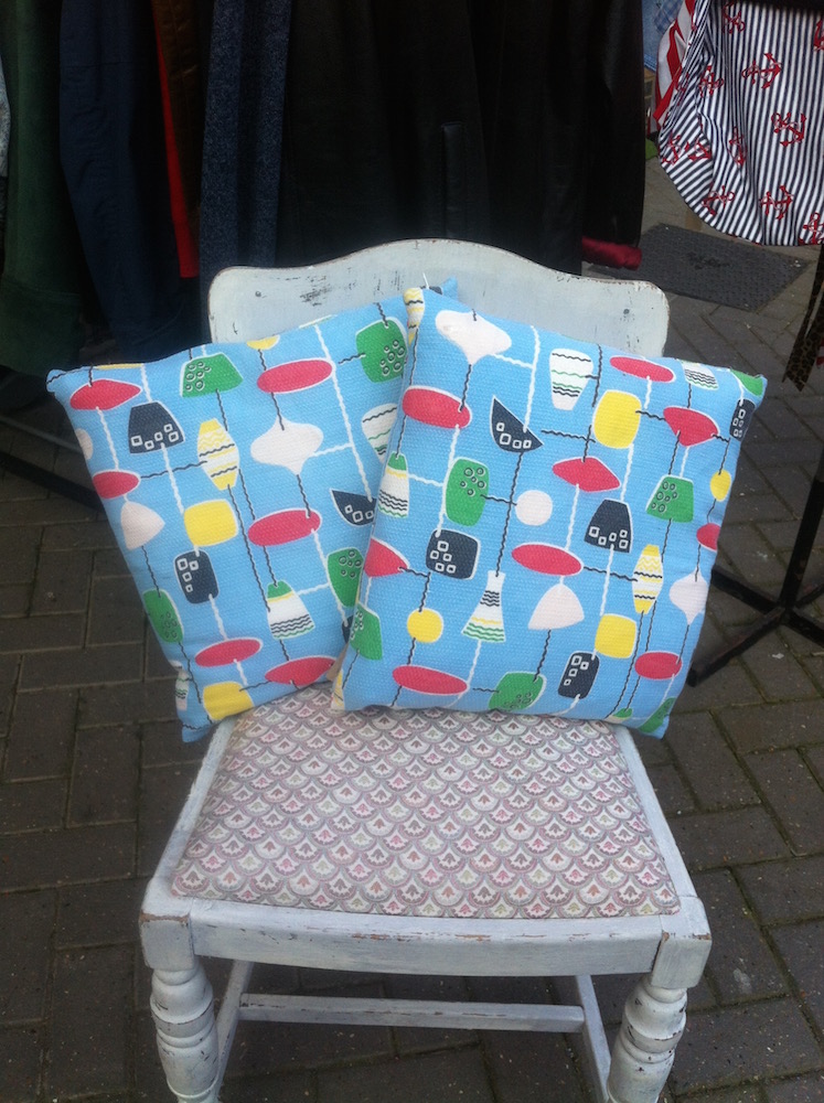You could either sew a patchwork top with the smaller pieces you have, or if you have big enough pieces (half of a meter should be plenty) create a simple cushion cover with a zip like these below. Not experienced in sewing? We run cushion cover making classes at our Brighton based shop. Check out our workshops page for dates.