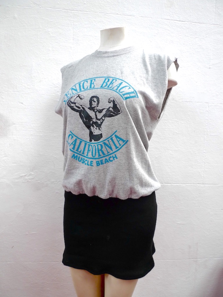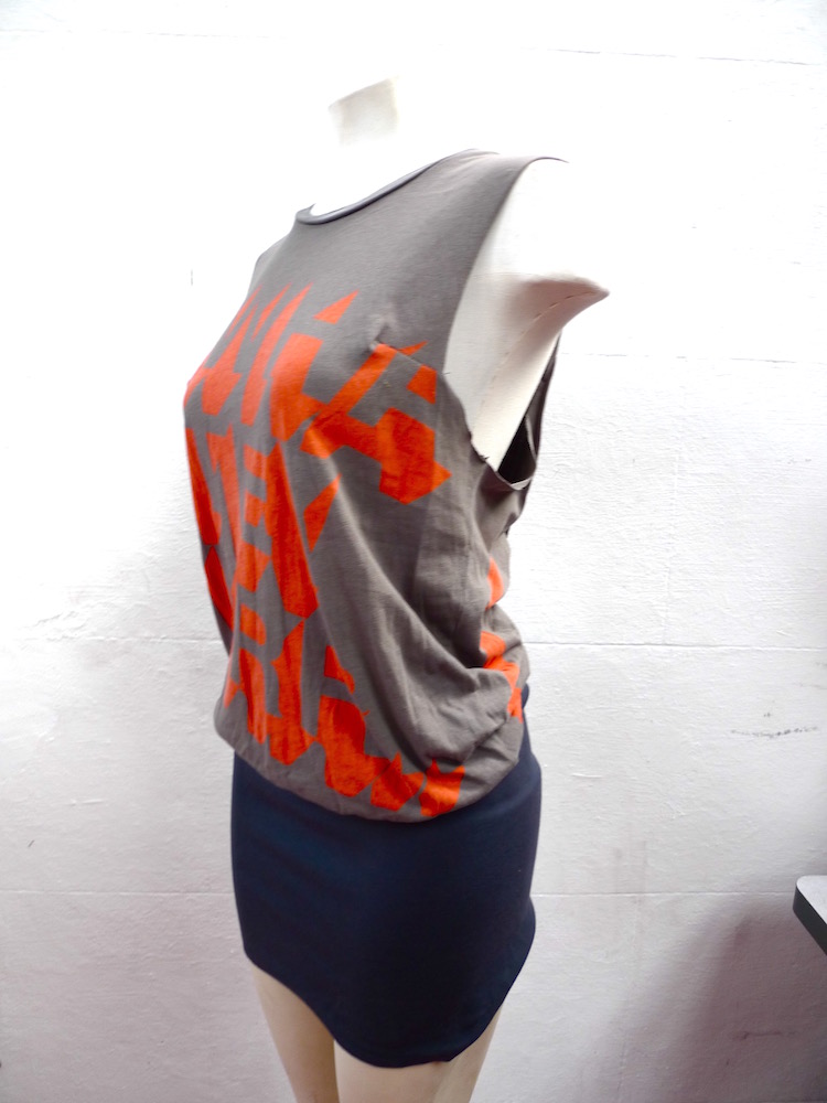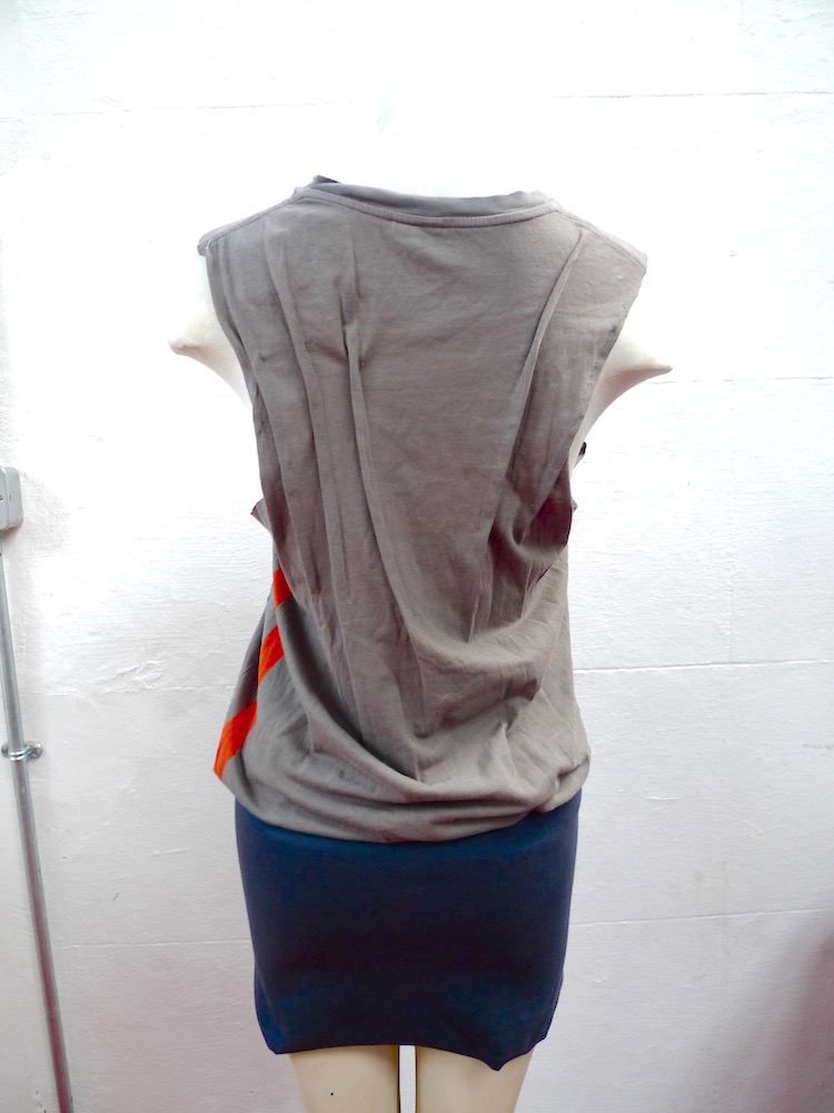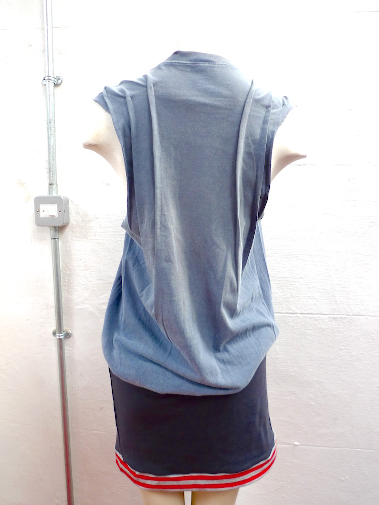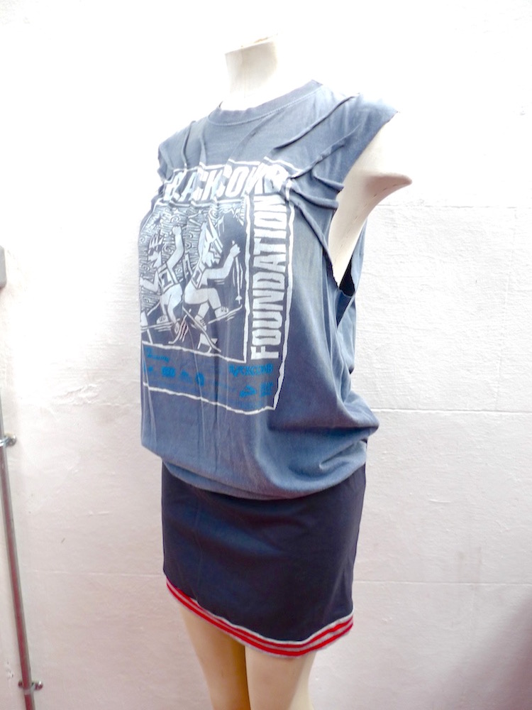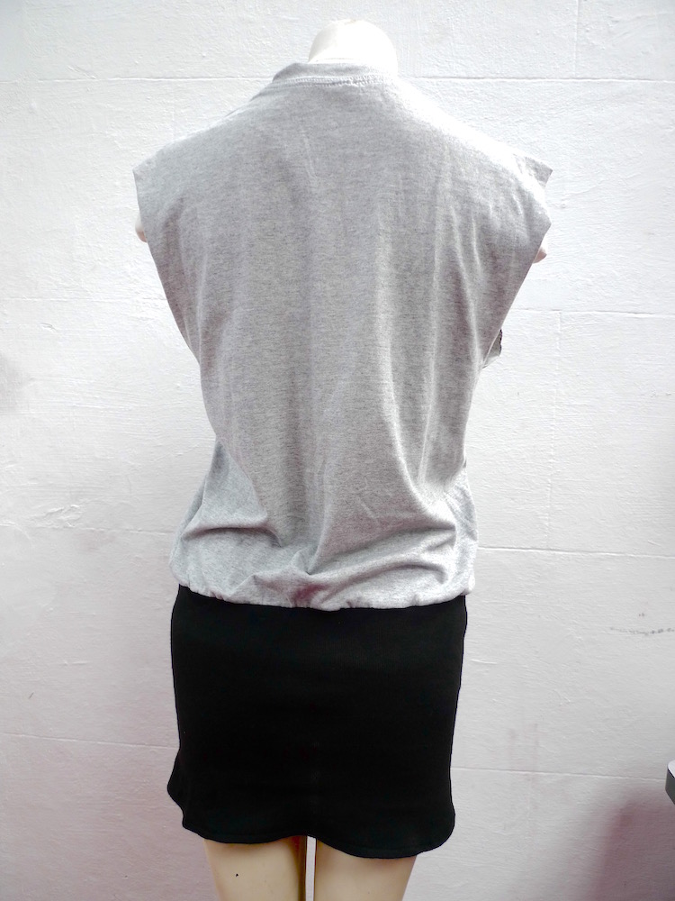The “skirt” part I cut from slightly thicker jersey that I had. On some of the t-shirt dresses I adjusted the sleeve hole a little to make it less gapy by putting in darts.( I kind of like the slouchy armholes though.) Wear it with a contrasting sports bra. Plus in the summer its nice and airy.