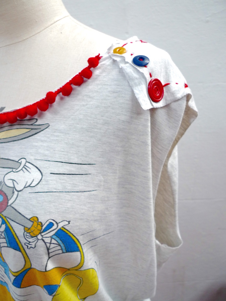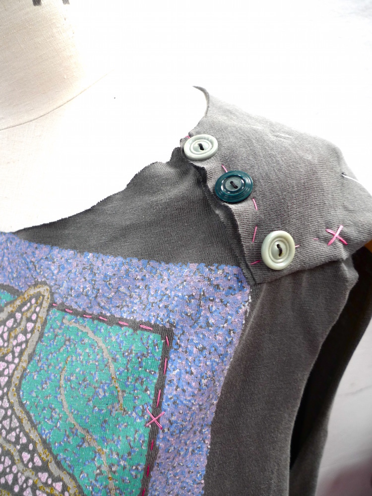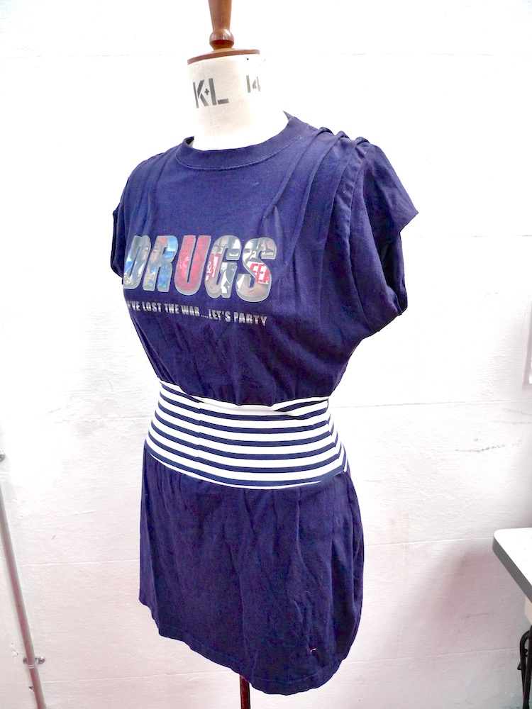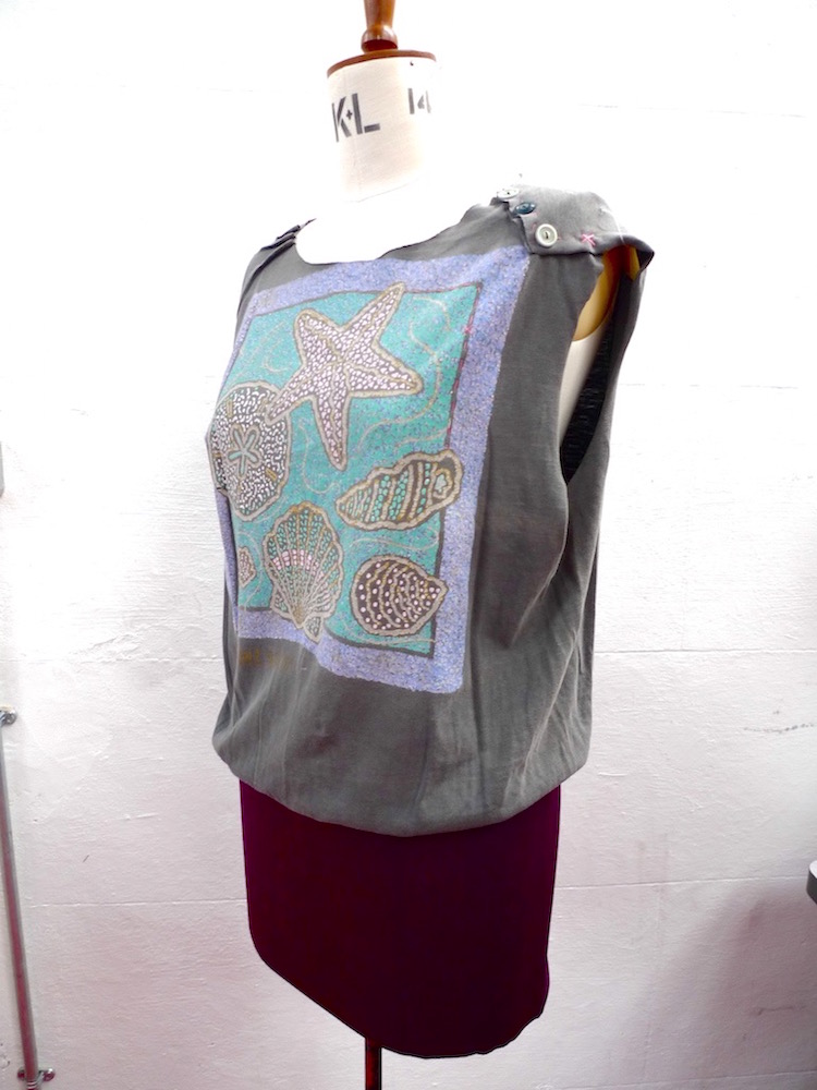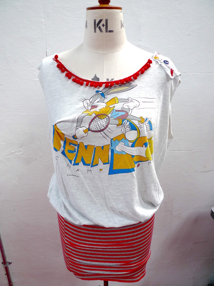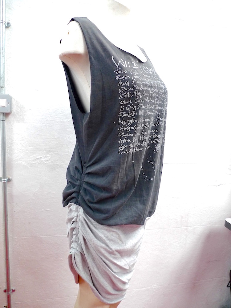 The “skirt” part I cut from slightly thicker jersey that I had. On some of the t-shirt dresses I adjusted the sleeve hole a little to make it less gapy by putting in darts.( I kind of like the slouchy armholes though.) Wear it with a contrasting sports bra. Plus in the summer its nice and airy.