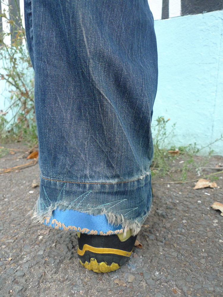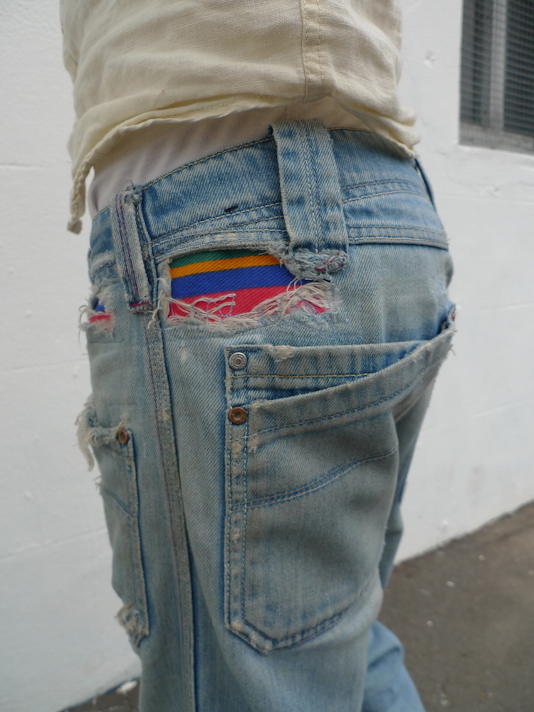 This is Brian’s bum. His favourite jeans were falling apart so we added a few patches which gave them a subtle splash of colour.