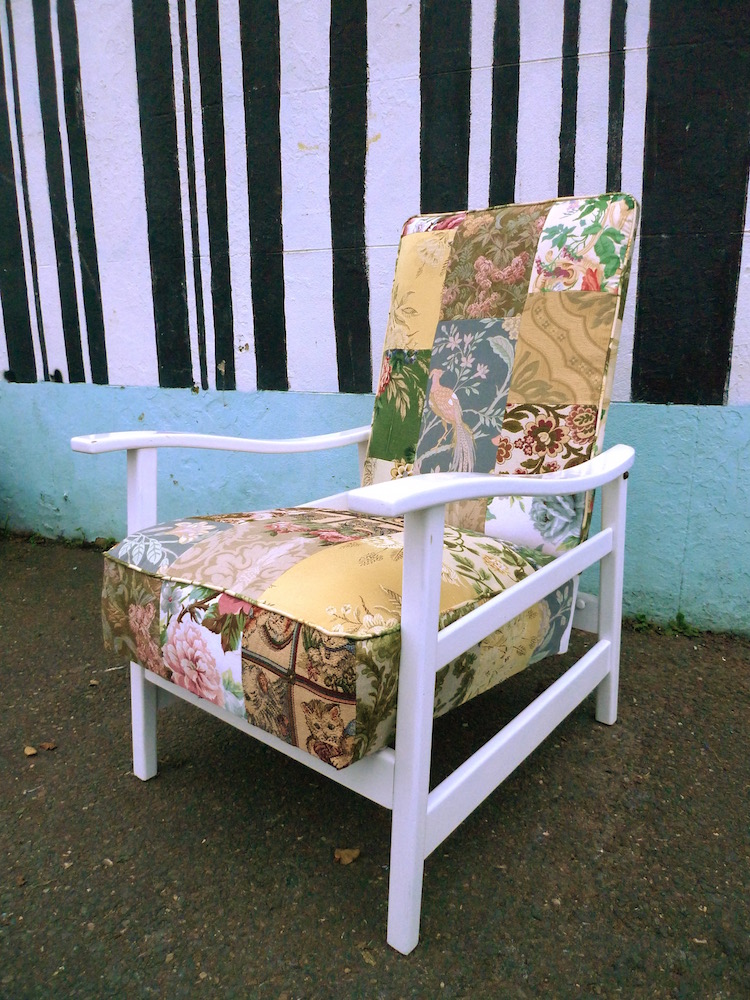 Ysanne and Peter had these old armchairs that were left from Ysanne’s grandad. The armchairs were comfortable and structurally fine so they just wanted to give them a second life buy having the patchwork magic done to them. Peter had already painted the wooden parts in a nice mat white.