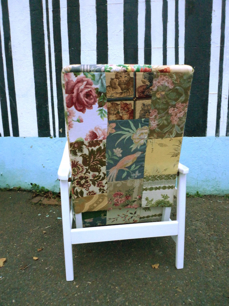 Ysanne showed me some photos of her patio and we also talked about the color-scheme she had in mind. They dropped them off to me in Brighton so it was left to me to sort out the rest. I mainly used off-cuts I had from other upholstery projects and vintage curtains I sourced form Shabitat.