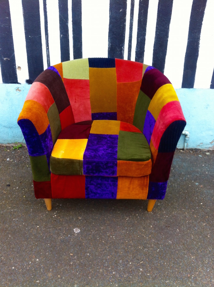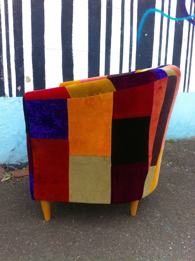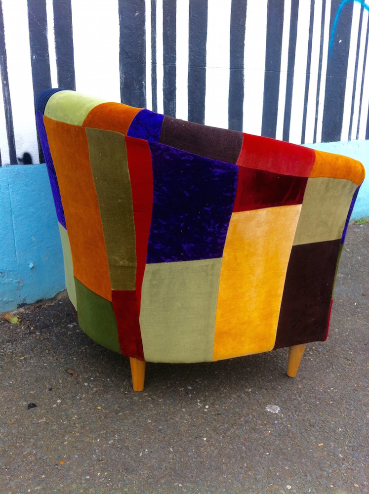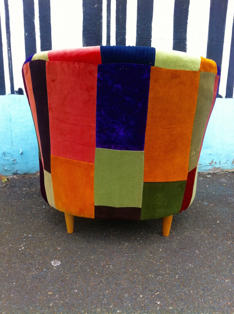 I couldn’t resist to make another one! Had all these gorgeous bits of velvet left from the wing back armchair project that I wanted to use and a tub chair came into Shabitat this week so perfect timing! Its up there with my favourites this one. I do have some more of this velvet left so if you want a tub chair in these colours its actually possible. Get in touch for more information.