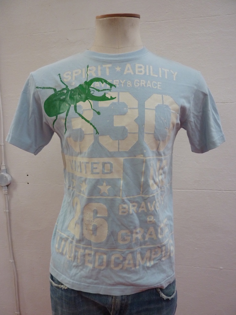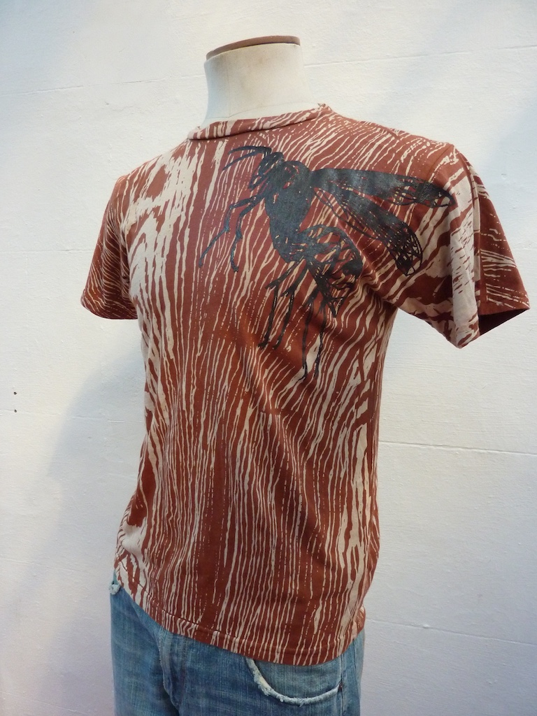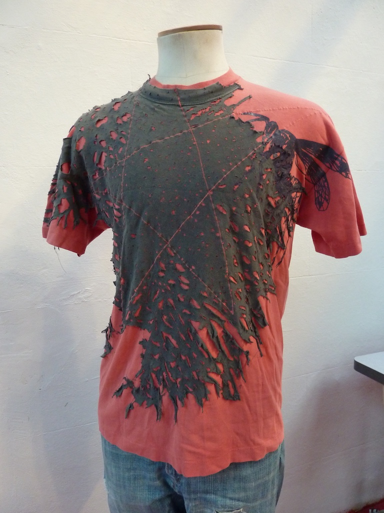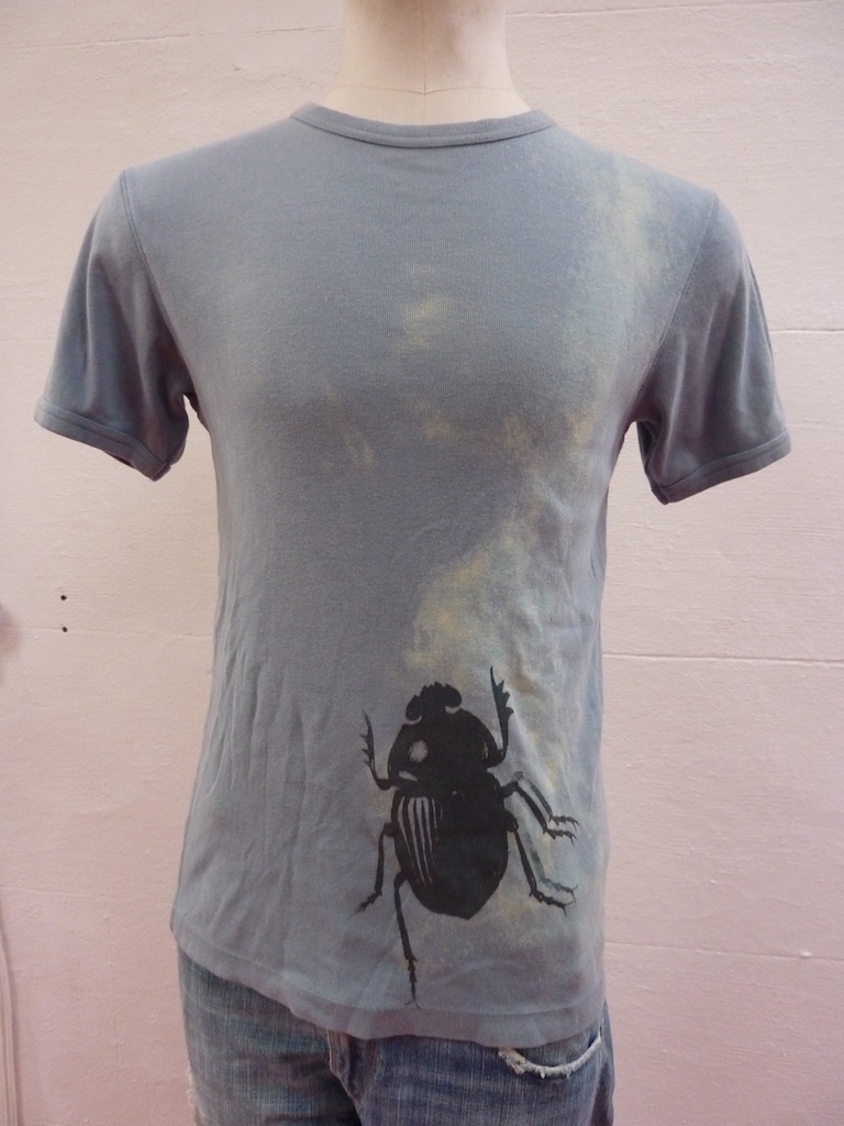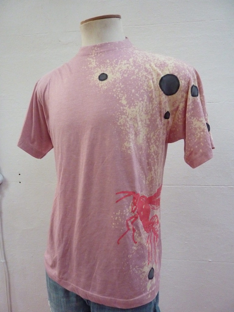 Before printing I sprayed some of the t-shirts with a bleach+water solution for more depth. Here are the results.