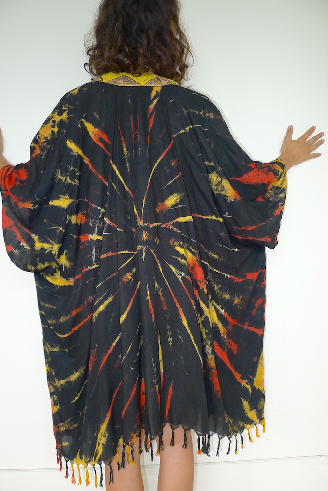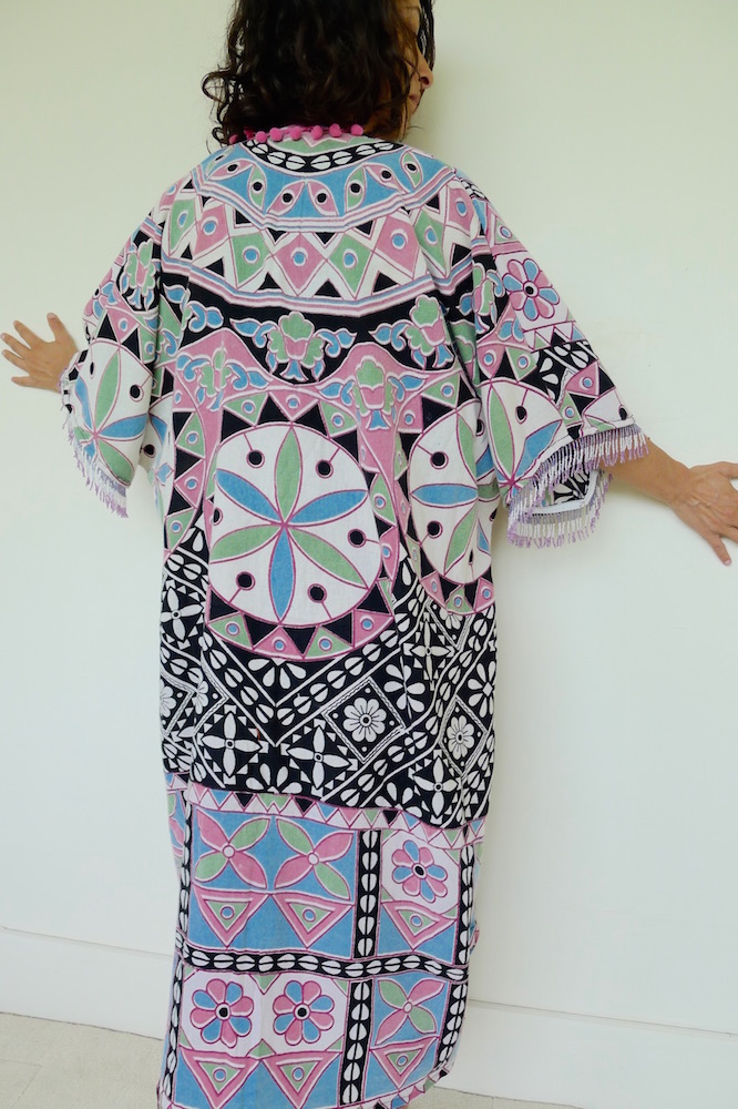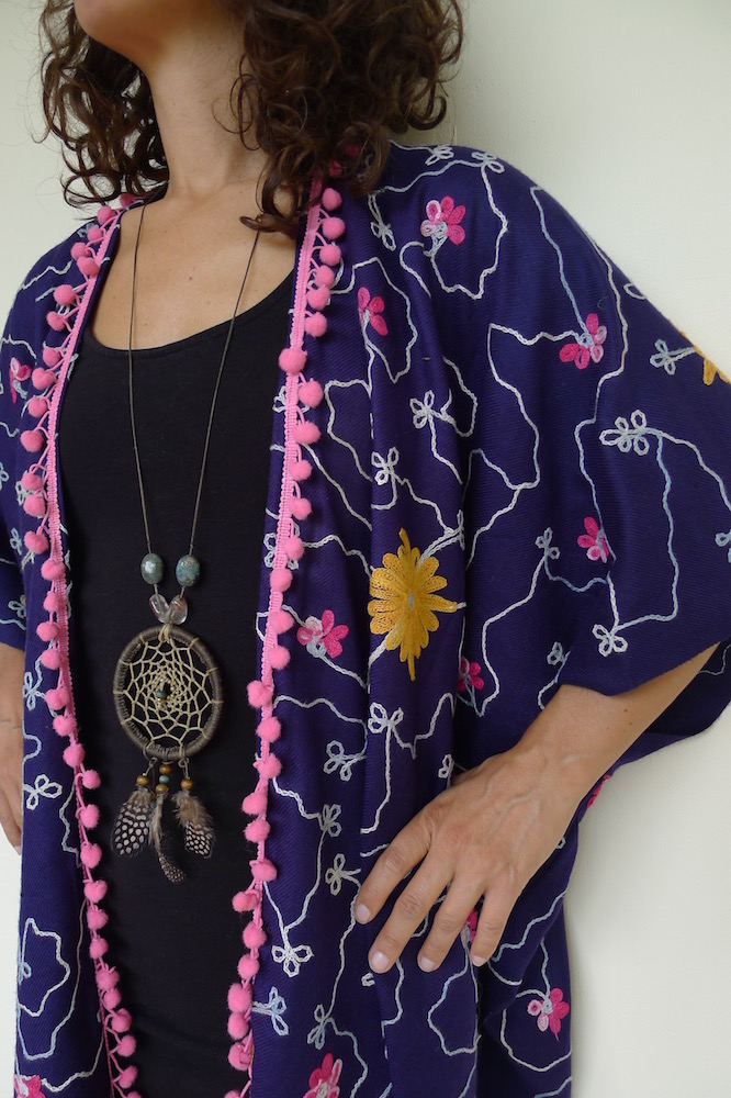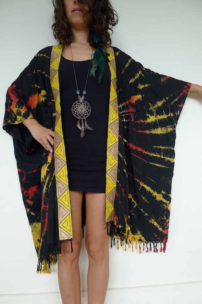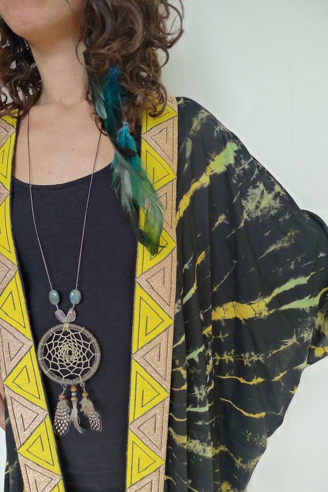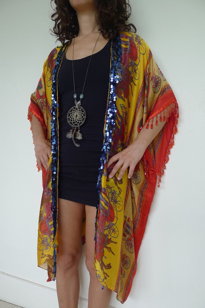 I really love making these kimonos. Well, they aren’t strictly kimonos, but a floaty summer layer inspired by. They are made from saris, sarongs and any other reusable fabric that comes my way. The trimmings I do buy new from my travels, the rest is all upcycled goodness.