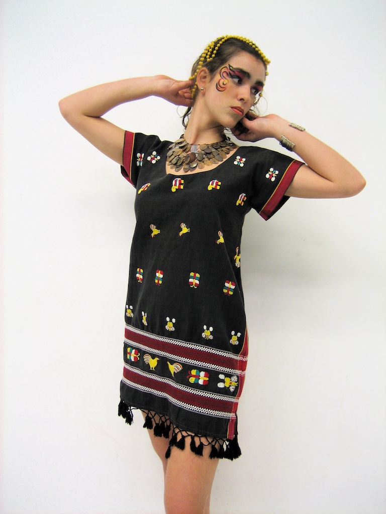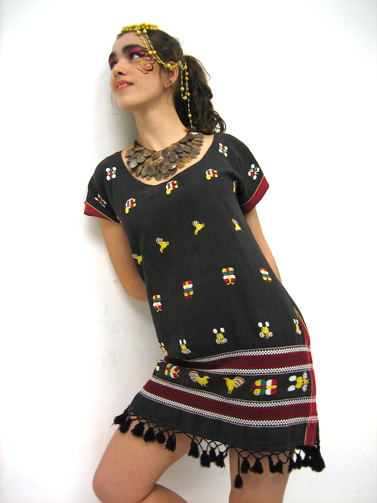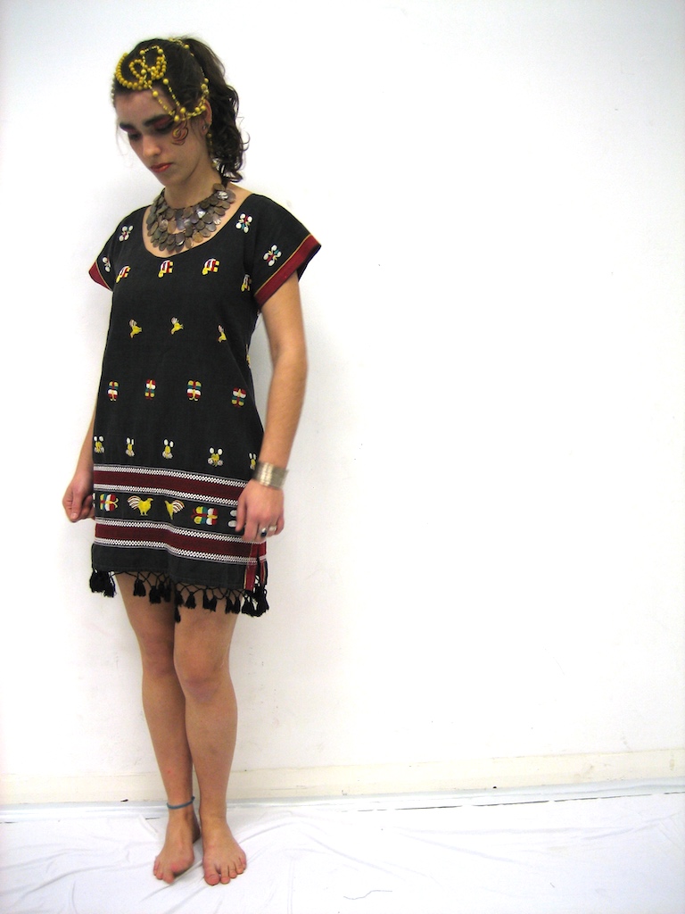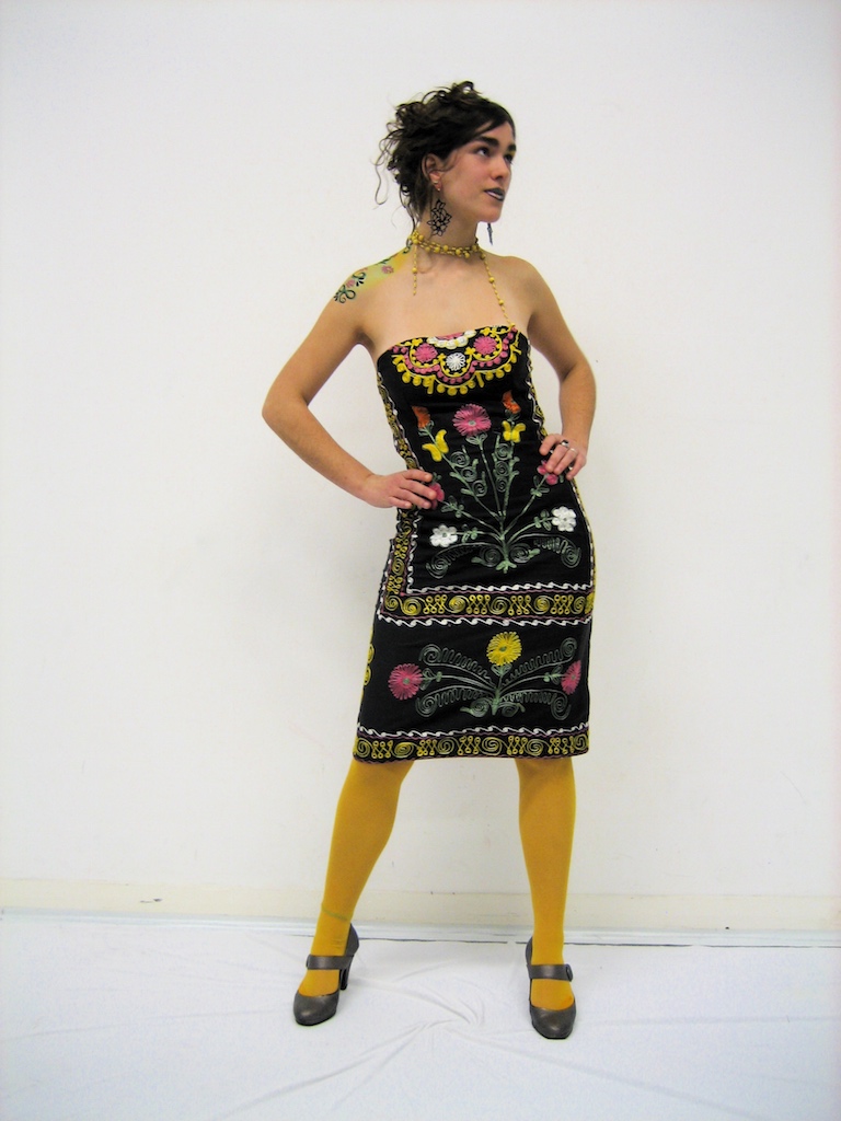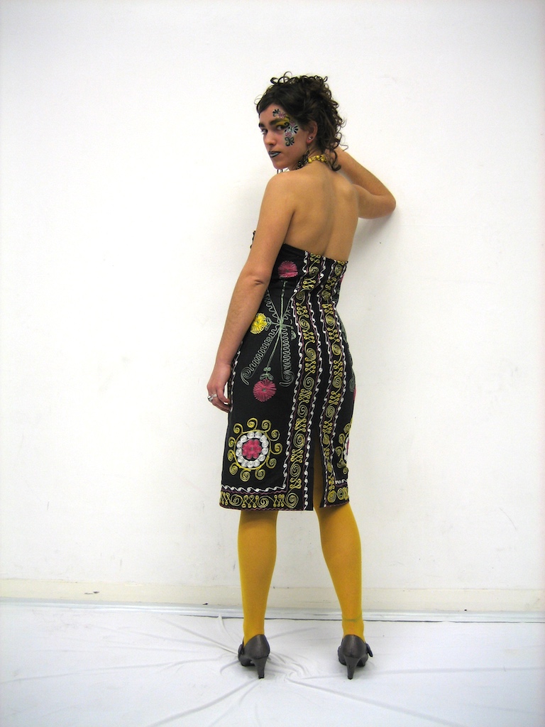This was an Indian cotton bed throw that I cut in half and made two dresses from. Boned for extra support.