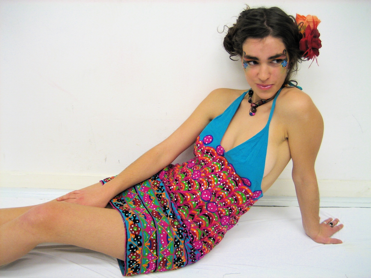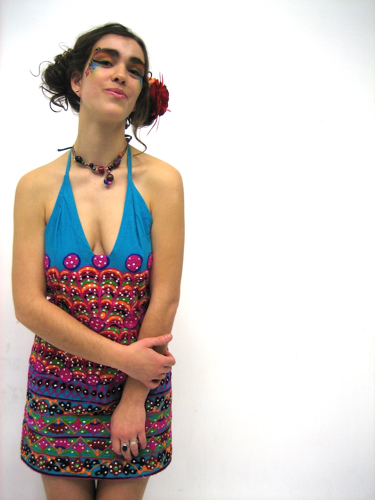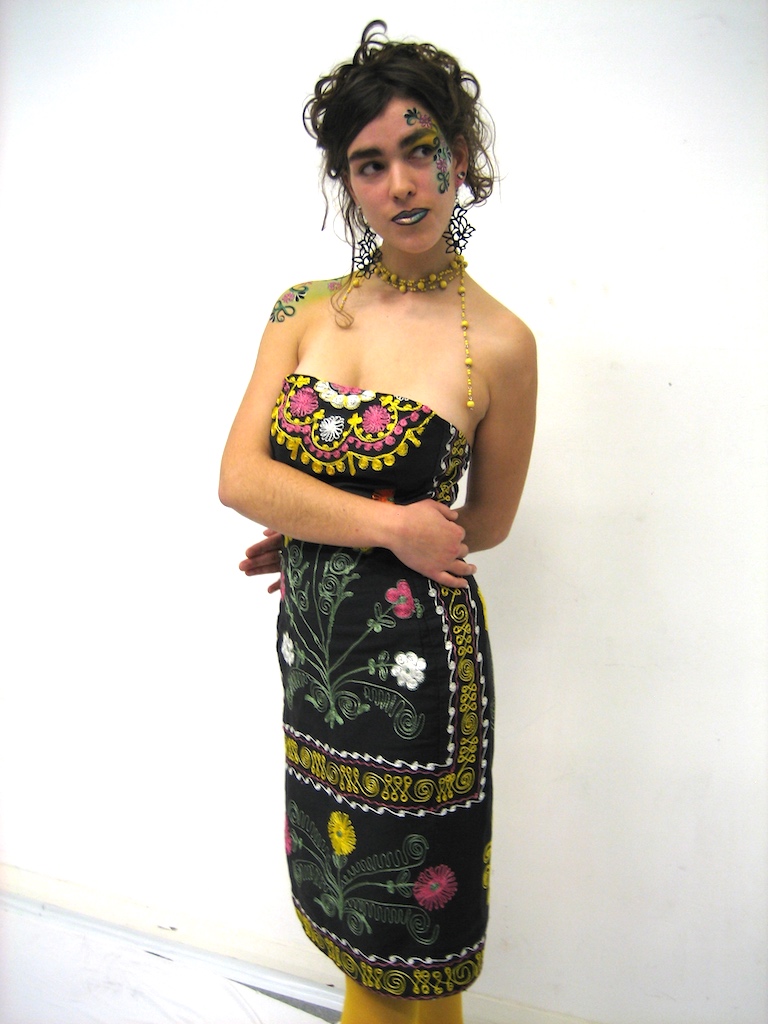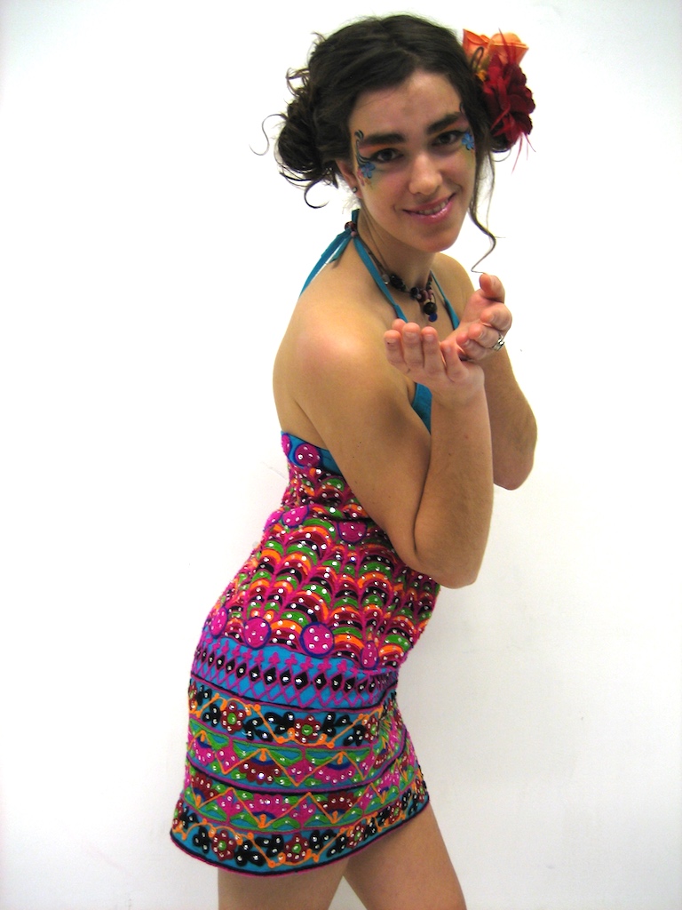 For the summer I wanted to create a collection that was vibrant and casual but using some more traditional fabrics. The lovely Chloe is my model and the award winning Naomi from Namnam’s did the face painting.