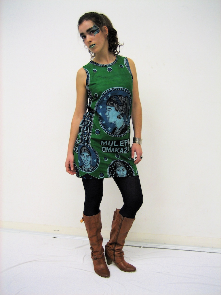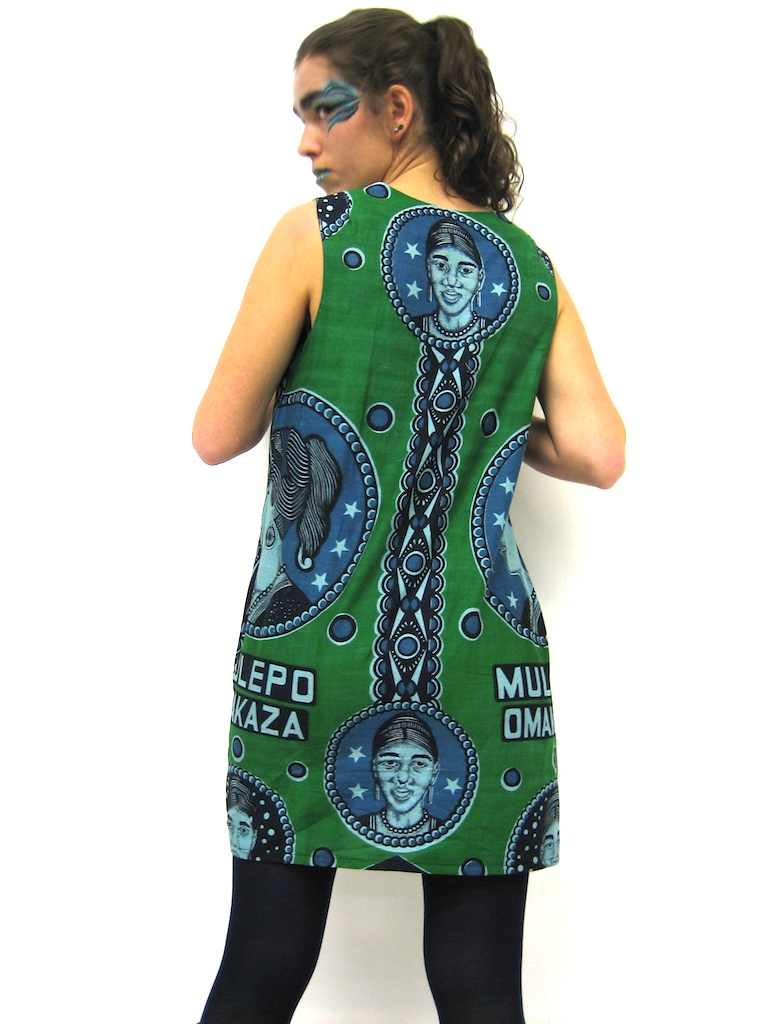 This lovely piece of fabric was used as a curtain by my ex housemate Rebecca. When she moved out I re-purposed it into an A-line dress. Apparently the print is for a women’s vote campaign.