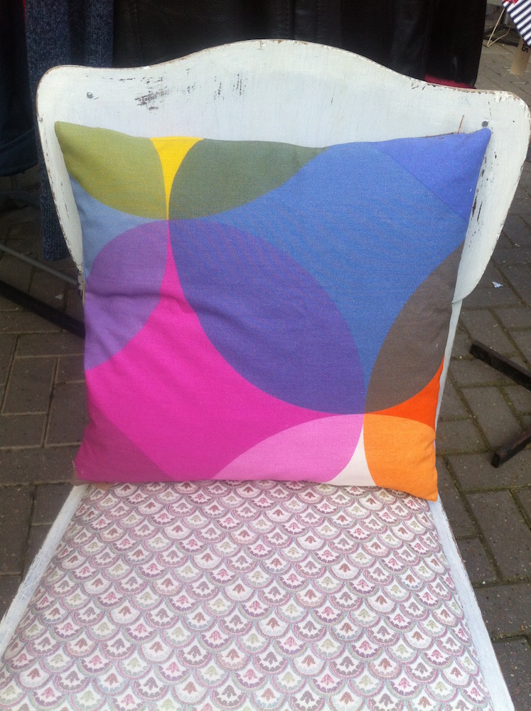 You could either sew a patchwork top with the smaller pieces you have, or if you have big enough pieces (half of a meter should be plenty) create a simple cushion cover with a zip like these below. Not experienced in sewing? We run cushion cover making classes at our Brighton based shop. Check out our workshops page for dates.