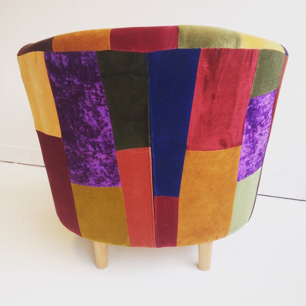 I couldn’t resist to make another one! Had all these gorgeous bits of velvet left from the wing back armchair project that I wanted to use and a tub chair came into Shabitat this week so perfect timing! Its up there with my favourites this one. I do have some more of this velvet left so if you want a tub chair in these colours its actually possible. Get in touch for more information.