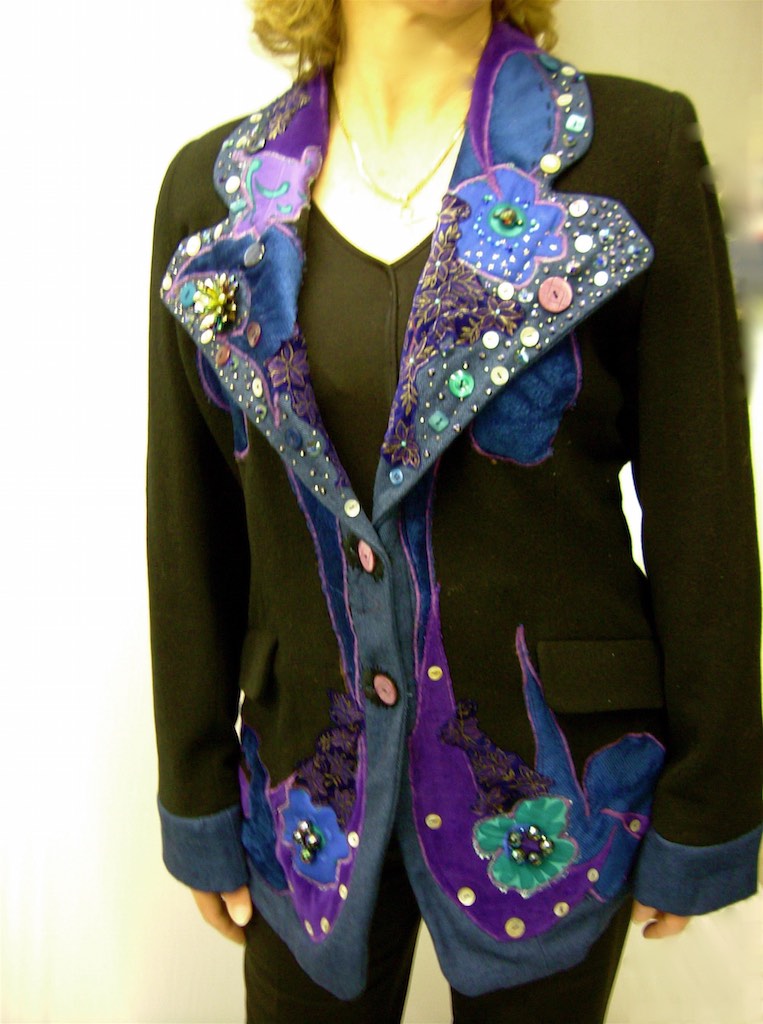 Kim works for the sustainability team at the Council. She wanted me to make her a striking stage outfit. We decided on a blue-purple colour palette. I think I got a little carried away with the beading. Hours and days later I stopped. She was very pleased with the outcome and had great comments from the crowd. Yay!