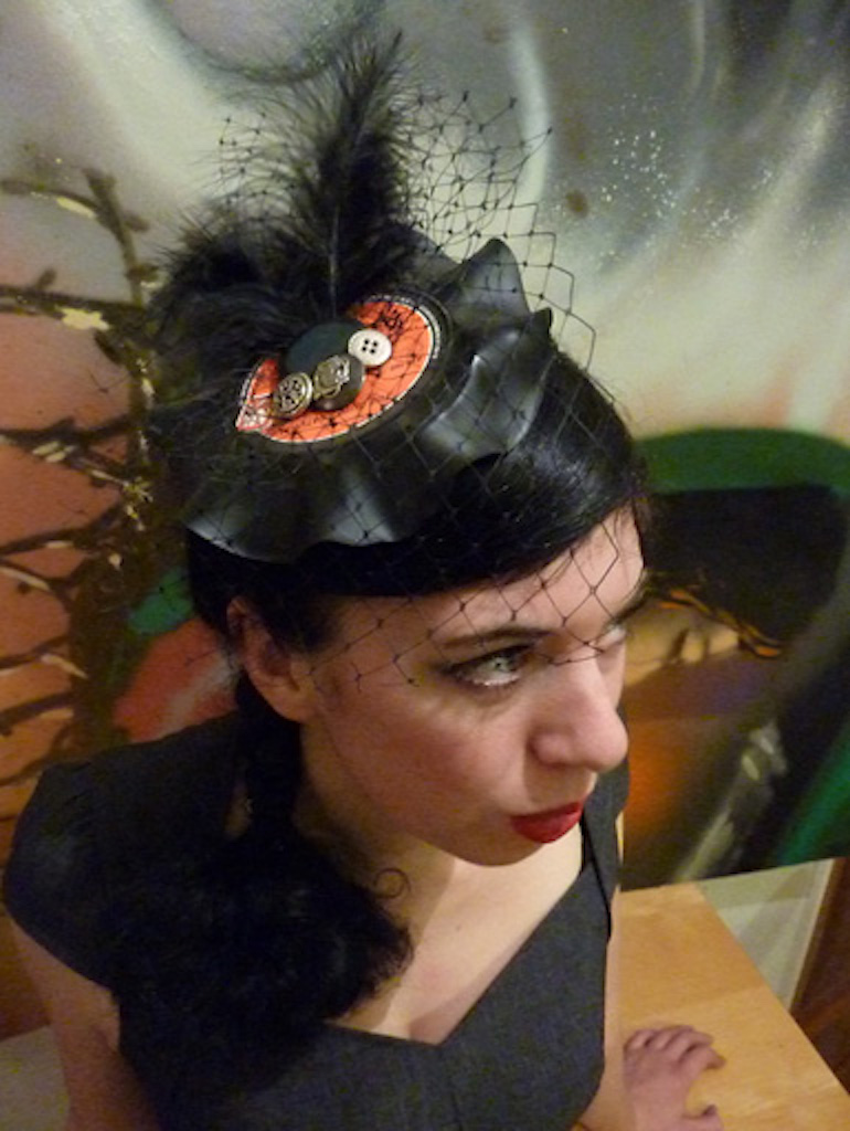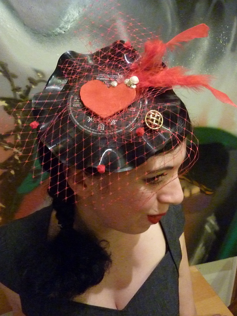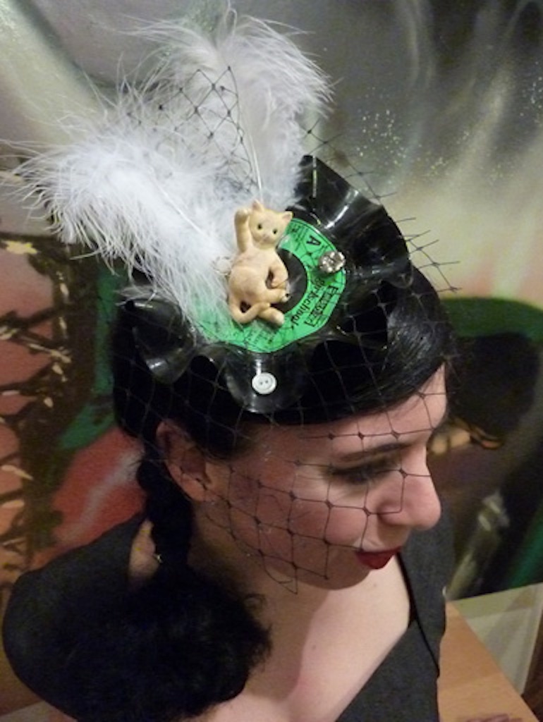 I love a good fascinator. But I see nothing fun in those beige and boring “mother of the bride” numbers. If I was going to make them they had to be made from found trinkets, lost toys and records of course.